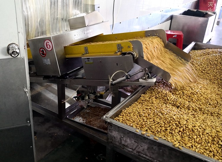 傻二哥定制的連之新第一代斜坡式炒花生高溫出料金屬檢測(cè)機(jī):